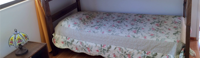 Los dormitorios de las cabañas incluyen las frazadas necesarias para cada cama y cuenta con veladores y lámparas.